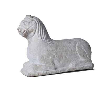 西夏灰砂岩石马。