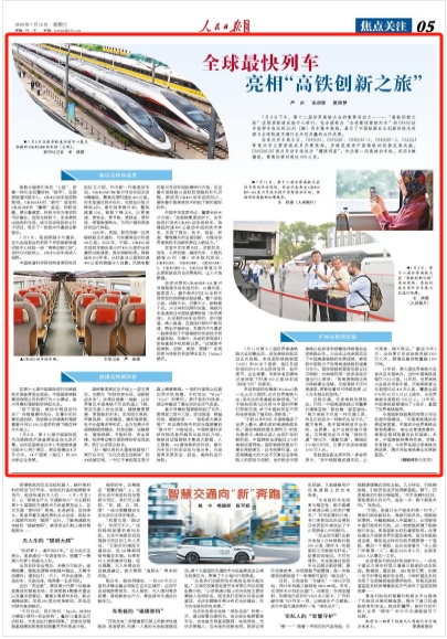 中国中车党委书记、董事长孙永才介绍:“在国铁集团组织下,去年底我们发布CR450动车组样车,构建起时速400公里动车组的技术体系,实现了理论、技术、装备、标准、管理模式的全面创新,为推动世界高铁技术创新发展注入新活力。”