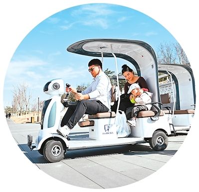在雄安新区悦容公园,游客在体验由雄安白小默科技有限公司自主研发的导览机器人。