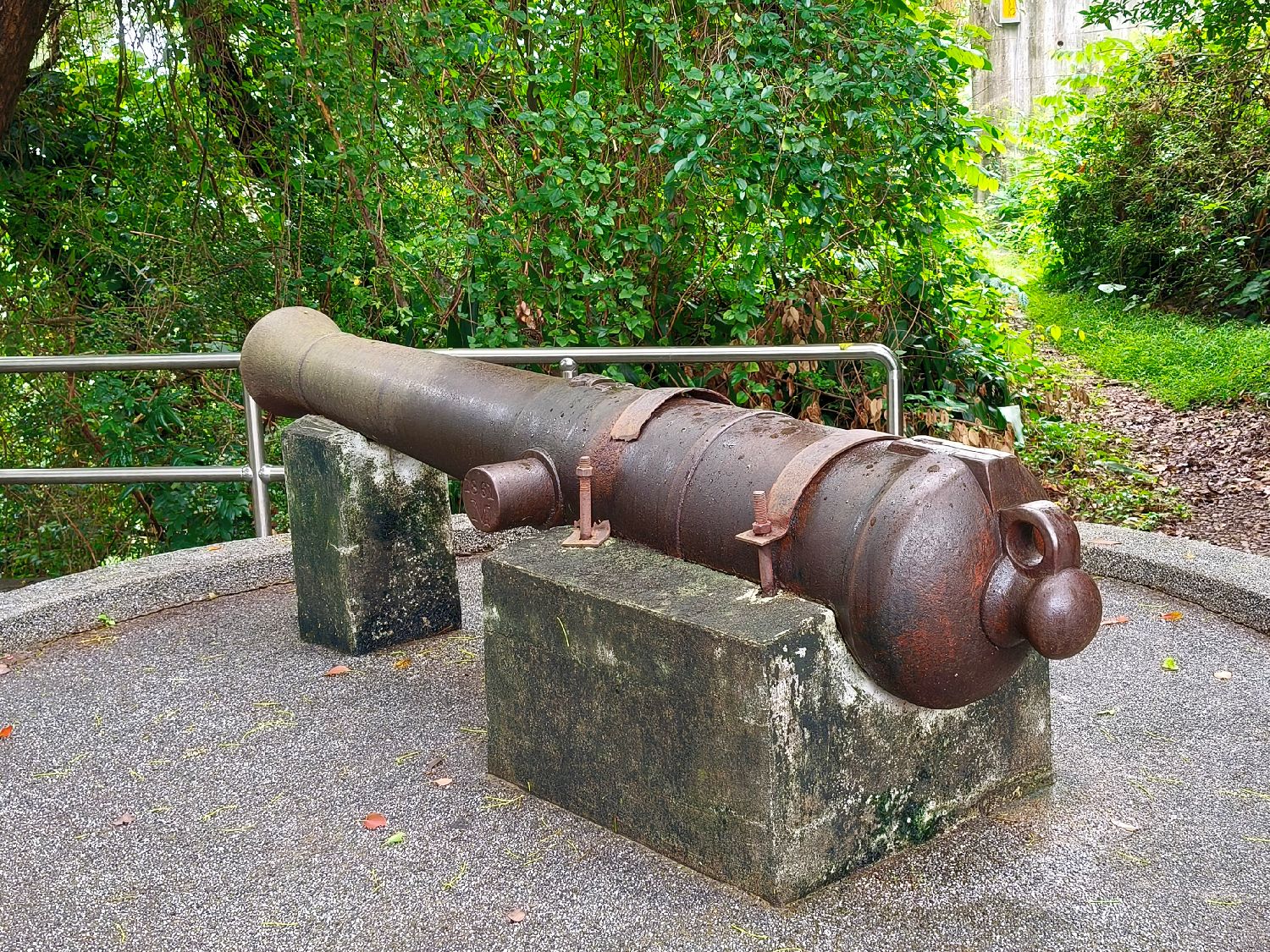图为八卦山抗日烈士纪念碑公园保留的两门古炮之一。(图片来源:中新社)
