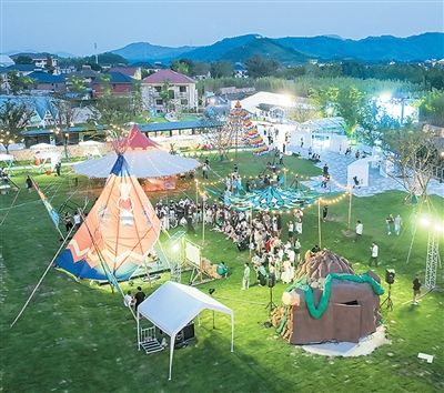 浙江莫干山举办消夏夜市,吸引了众多游客。