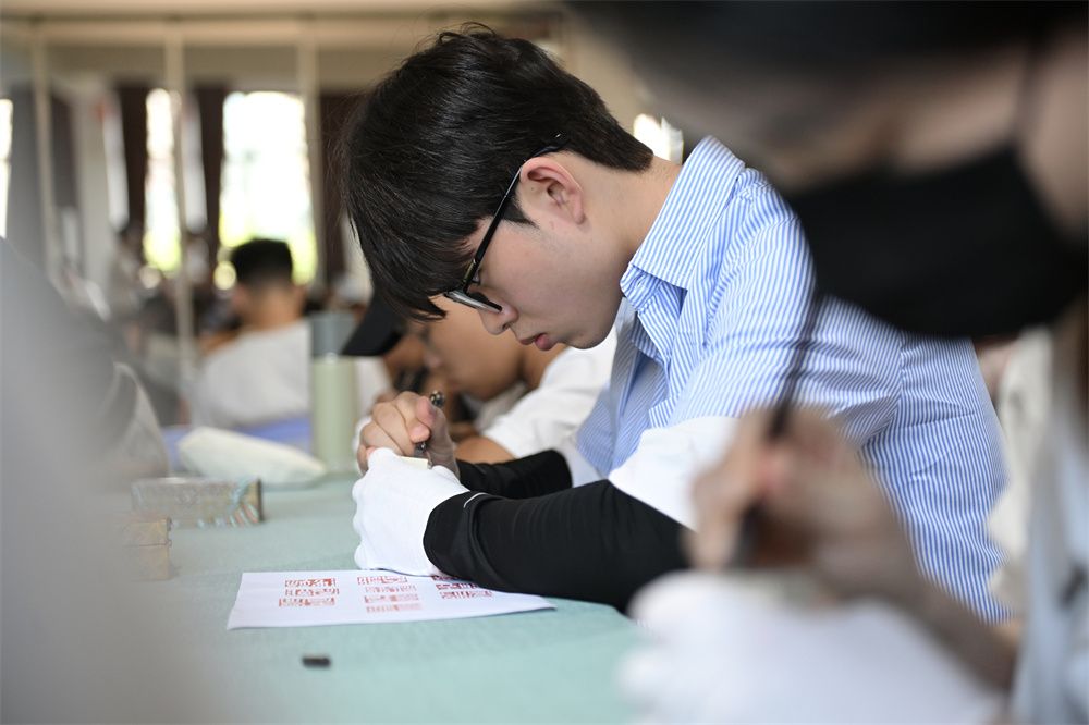 7月30日,两岸近百名青少年走进福州市鼓楼区文化馆参加篆刻体验活动。(图片来源:中新社)