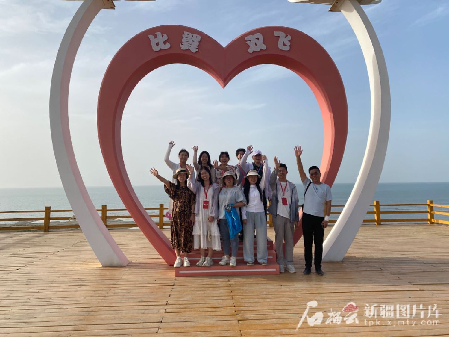 近日,“高质量发展看新疆”网络主题活动团队在环湖公路沿途景点合影。天山网-新疆日报记者 赵梅摄