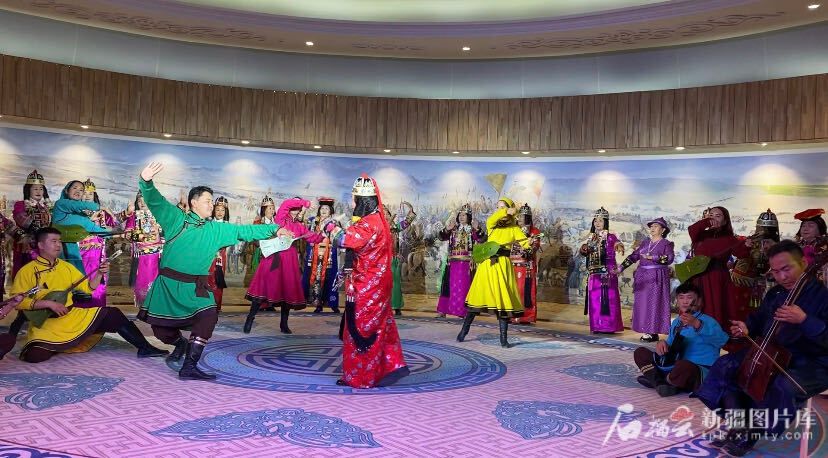 博湖县蒙古族非物质文化遗产传承保护中心的演员和民间艺人在表演舞蹈。天山网-新疆日报记者 赵梅摄