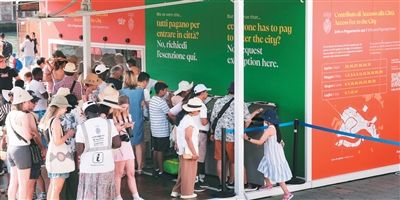 游客在意大利威尼斯的一个进城费问讯处获取通行二维码。