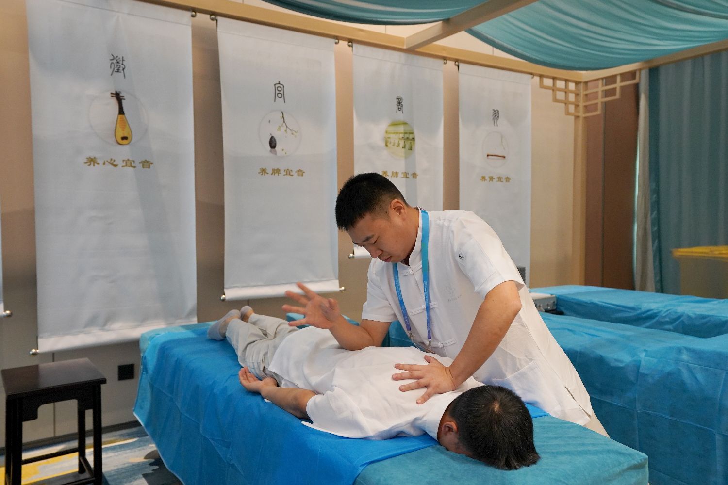 8月3日,成都世运村里的推拿体验。(图片来源:中新社)