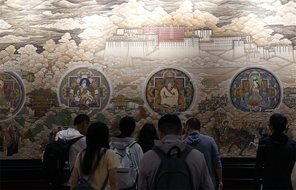 8月5日,游客参观西藏博物馆内展出的唐卡。(图片来源:本文图片均自中新社)