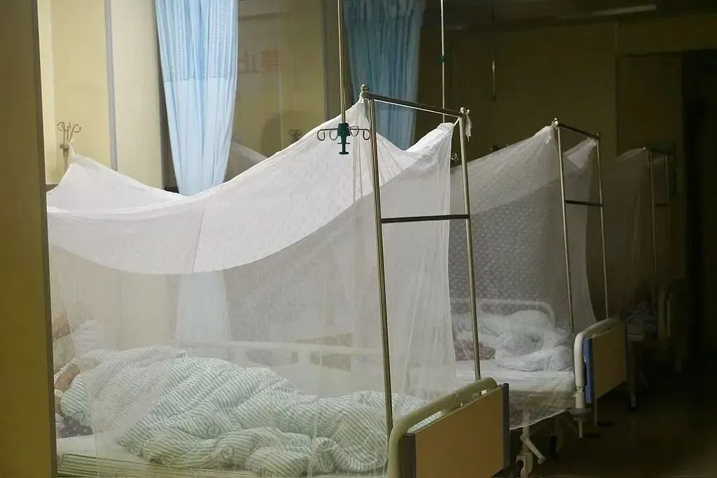 许玲确诊了基孔肯雅热,住进感染科病房。那一层约10间病房,3人一间,全是基孔肯雅热患者。每间病房门口挂着防蚊门帘,病房里持续开着电蚊香,清洁工用消毒水拖地,护士为每个下床走动的患者喷驱蚊水,白色蚊帐罩着每一张病床。