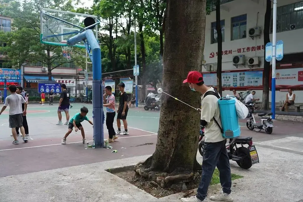 正因此,这一个月以来,佛山上下的工作核心便是:清积水。阿梅说,他们要敲开村里每一户大门,请求入户检查是否有积水(比如花盆、水缸),并帮忙倒掉。一位社区工作人员发帖说,最近的工作由“倒积水”开始,暴雨倒、暴晒倒,连猫狗的水碗都不放过。有人说出现了职业病,见到任何容器都想倒扣。还有人上门检查积水时,发现神坛后面有水培富贵竹,倒水前,先恭恭敬敬拜了神明。