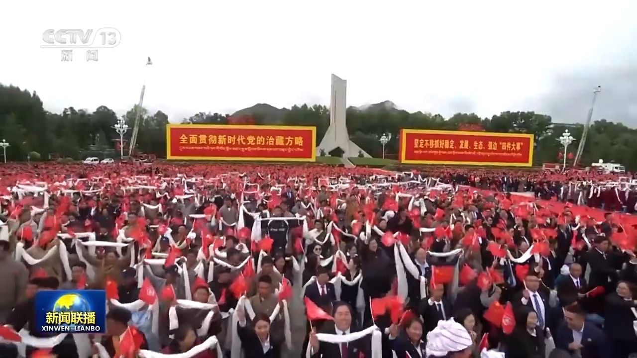 在西藏自治区成立60周年之际,习近平总书记率中央代表团来到西藏并出席庆祝大会,听取自治区党委和政府工作汇报并发表重要讲话。西藏各族干部群众欢欣鼓舞、倍感温暖。大家表示,站在新的历史起点,要坚持以习近平新时代中国特色社会主义思想为指导,不断铸牢中华民族共同体意识,团结奋进中国式现代化新征程。