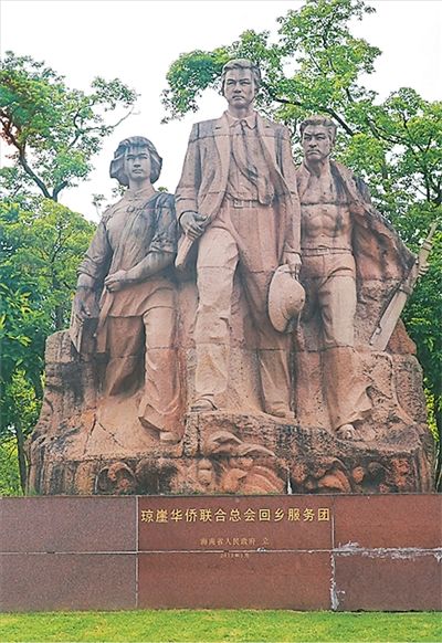 位于海口青少年活动中心广场的“琼崖华侨联合总会回乡服务团”雕塑。本报记者 孙海天摄