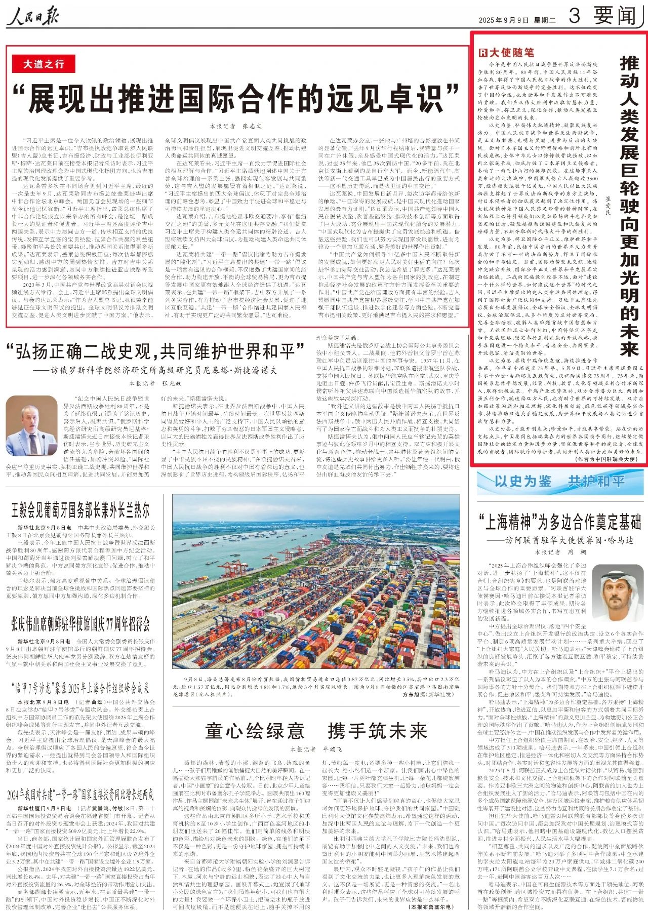 2025年9月9日,中国驻瑞典大使崔爱民在《人民日报》“大使随笔”专栏发表署名文章《推动人类发展巨轮驶向更加光明的未来》。全文如下: