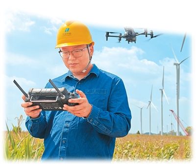 王磊操作无人机进行风机叶片巡检。宋知秋摄