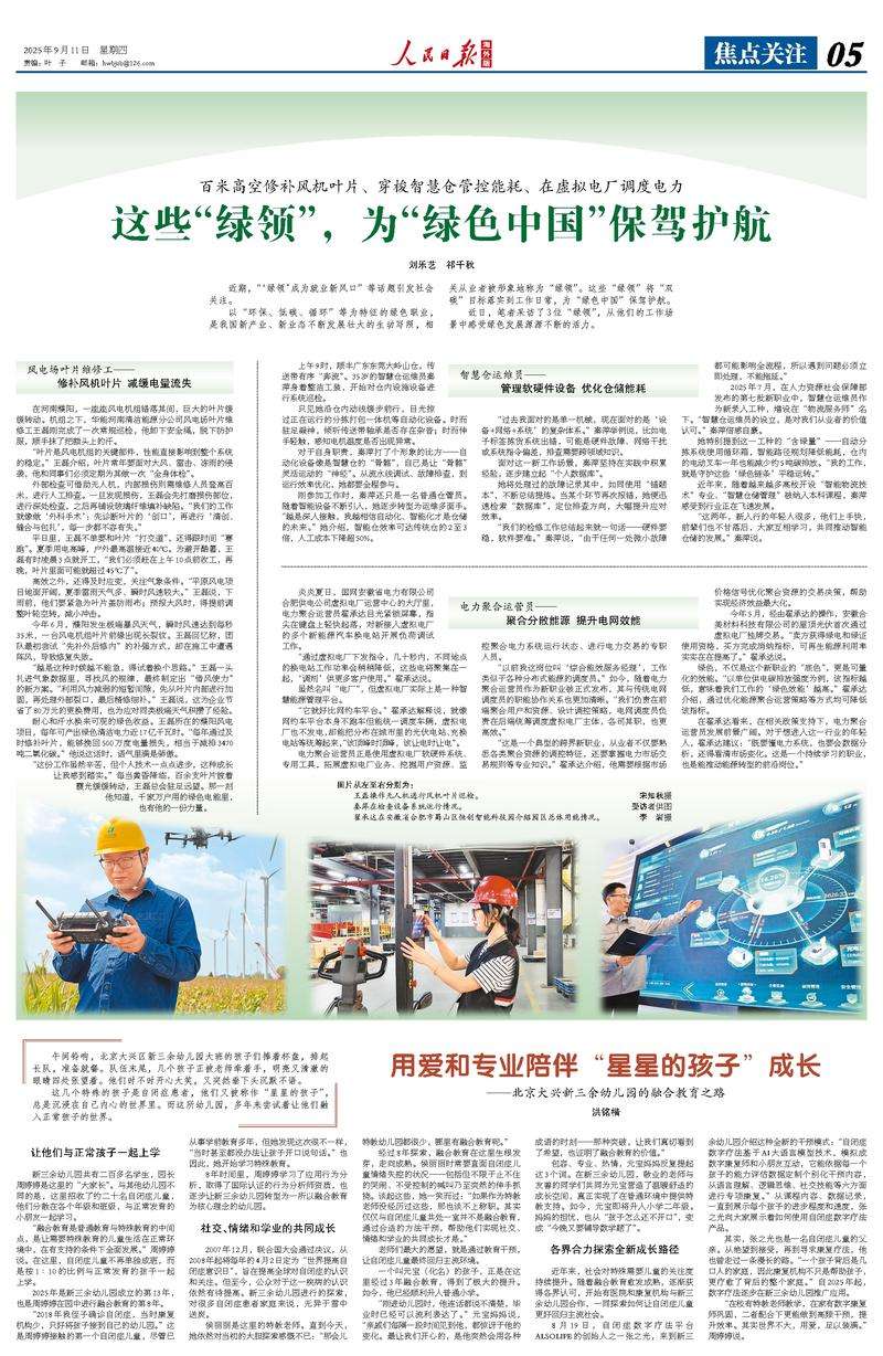 以“环保、低碳、循环”等为特征的绿色职业,是我国新产业、新业态不断发展壮大的生动写照,相关从业者被形象地称为“绿领”。这些“绿领”将“双碳”目标落实到工作日常,为“绿色中国”保驾护航。