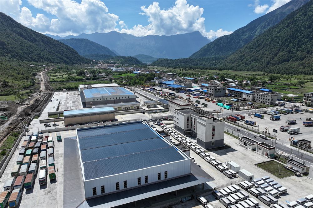 2025年5月25日,随着边境贸易的发展,西藏吉隆沟达曼村附近的物流园区已具规模。(图片来源:中新社)