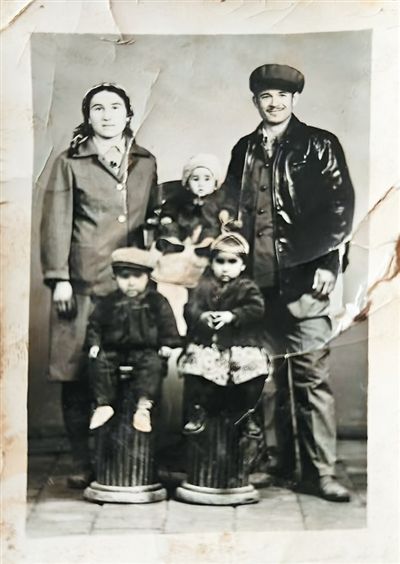 古丽米热·艾尔肯(前排右一)在1981年和父母亲、弟弟妹妹一起留影。