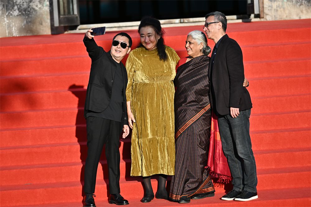 9月24日,第九届平遥国际电影展在平遥古城开幕。图为中国导演贾樟柯(左一)与电影人合影。(图片来源:中新社)