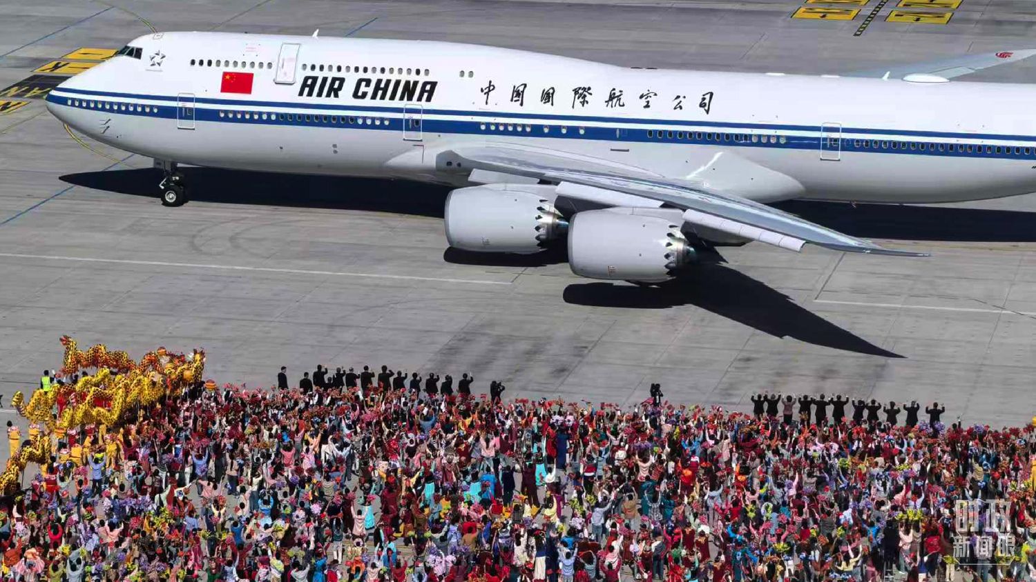△习近平总书记乘专机离开乌鲁木齐。(总台央视记者王子杭拍摄)