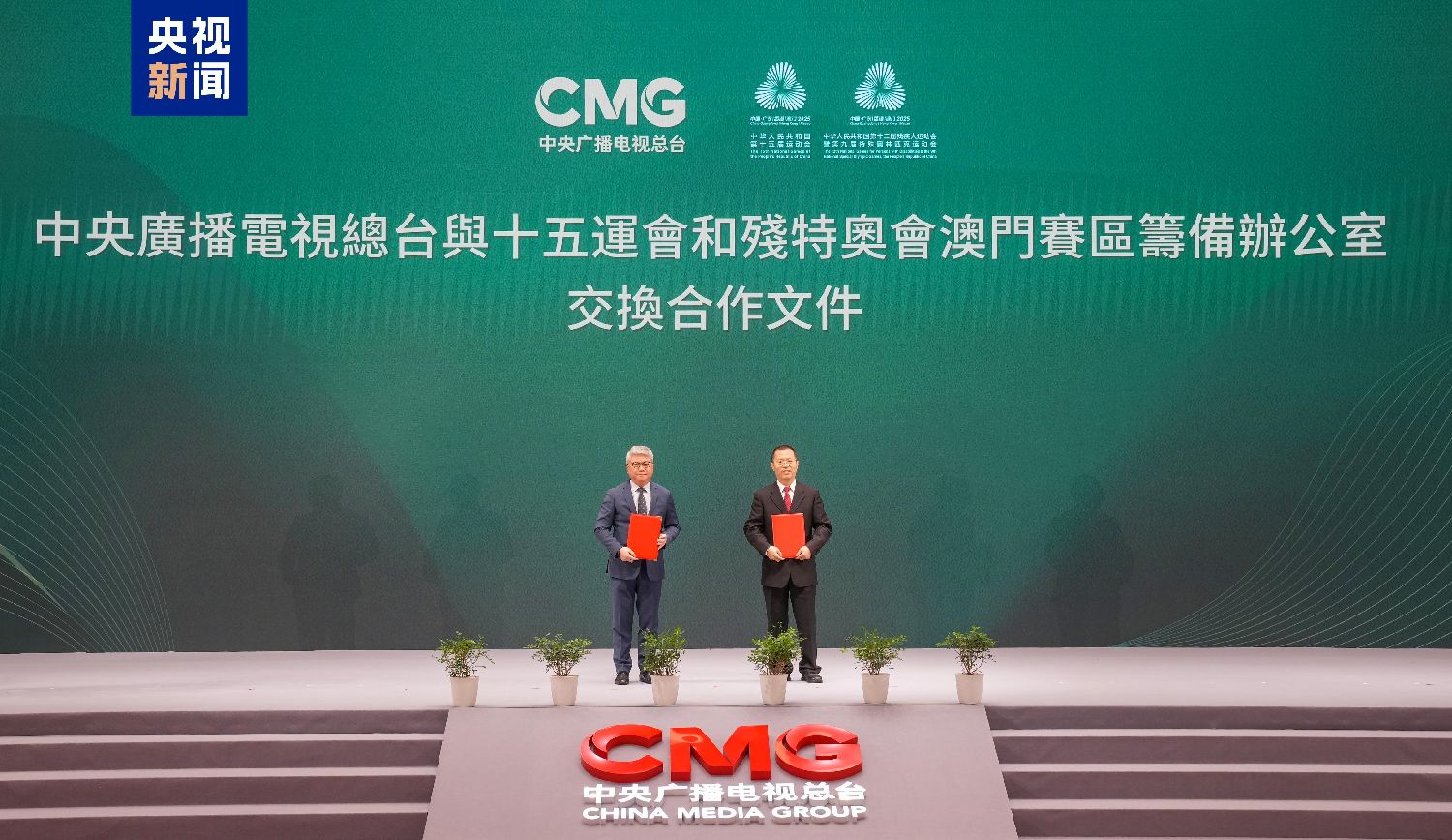 中央广播电视总台还与十五运会和残特奥会澳门赛区筹备办公室、澳门广播电视股份有限公司、澳门大学分别交换相关合作文件,围绕十五运会和残特奥会赛事宣传推广、体育赛事转播、媒体交流及人才培养等方面达成多项务实合作,为推动澳门发展凝聚多方合力。