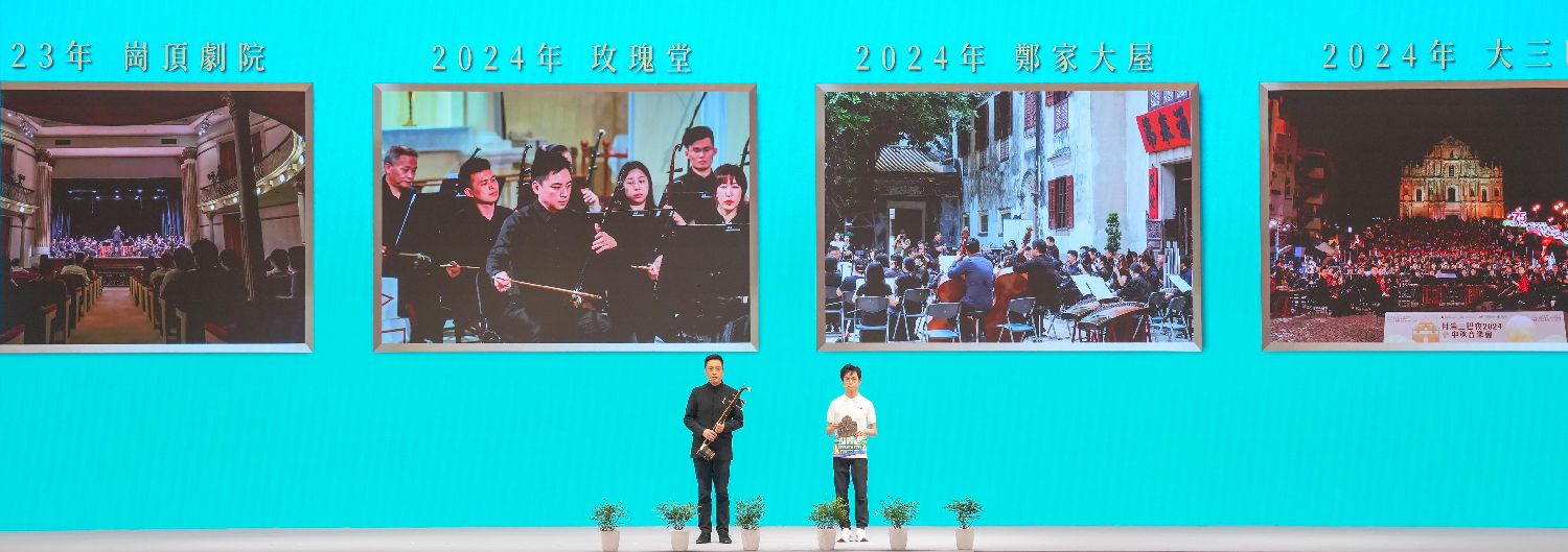△澳门中乐团首席张悦如、世界遗产少年导览员王峻豪现场推介节目