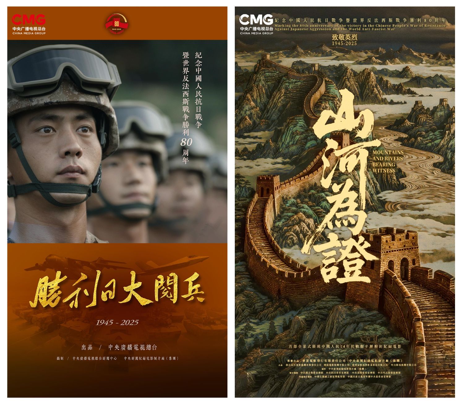 铭记历史,珍爱和平。纪录电影《胜利日大阅兵》展示了由1万余名官兵、80面战旗、数百台地面装备和上百架飞机组成的45个方(梯)队光荣接受党和人民检阅的全过程。为持续用好纪念活动这本生动的爱国主义教材,影片在阅兵电视直播的基础上进行二次创作与艺术提炼,融入珍贵历史影像和空中梯队飞越等独特镜头,使观众身临其境感受正步铿锵、铁甲奔流、战鹰呼啸的人民军队新风貌,传递中华民族珍爱和平、开创未来的坚定信念。纪录电影《山河为证》真实再现了从1931年日本军国主义发动九一八事变到1945年抗日战争取得完全胜利的历史进程,反映了东方主战场为世界反法西斯战争胜利作出的巨大贡献和中国共产党在抗战中发挥的中流砥柱作用,弘扬伟大抗战精神。