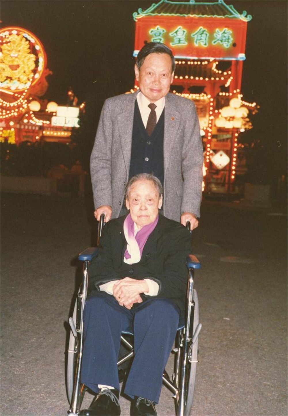 1987年春节期间,杨振宁和母亲在香港仔留影。(图片来源:香港中文大学供中新社)