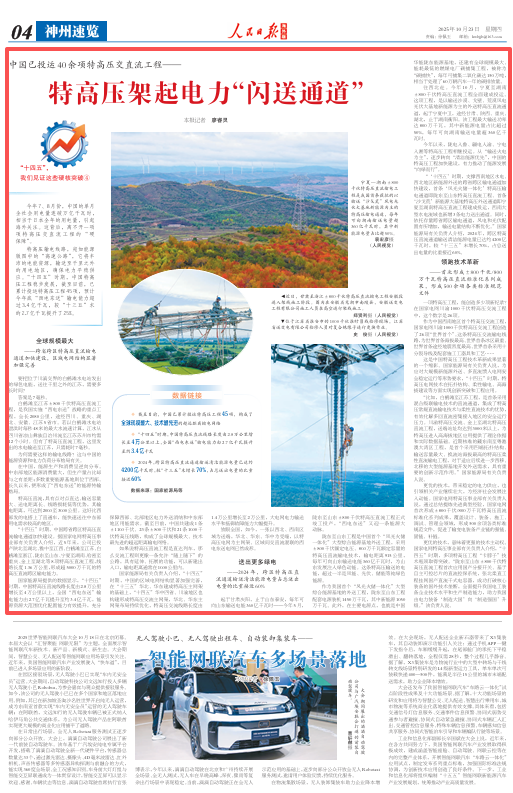 更优的技术,意味着更强的技术主动权。国家电网特高压事业部有关负责人介绍,“十四五”时期,多项特高压工程“卡脖子”技术瓶颈取得突破。“陇东至山东±800千伏特高压直流工程首次应用国产分接开关、基于自主可控芯片的直流控保系统,张北柔直工程挂网国产直流干式电容器,成功打破核心装备的国外技术垄断,全面提升我国电工装备企业技术水平和生产制造能力,助力我国由电力装备‘制造大国’向‘制造强国’升级。”该负责人说。(记者 廖睿灵)