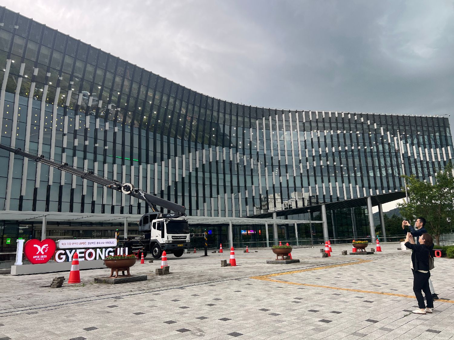 9月17日,亚太经合组织(APEC)第三十二次领导人非正式会议主会场韩国庆州和白国际会议中心进行会前准备。(图片来源:中新社)