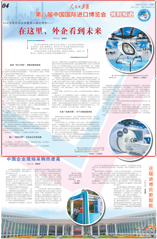 今年进博会上,461项新产品、新技术、新服务集中亮相。外企看到,新技术在中国能够迅速找到多元的应用场景。