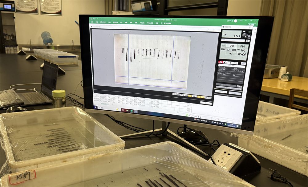 11月11日,在南昌汉代海昏侯国遗址博物馆的文物修复室内,数枚简牍被扫描至电脑。(图片来源:中新社)