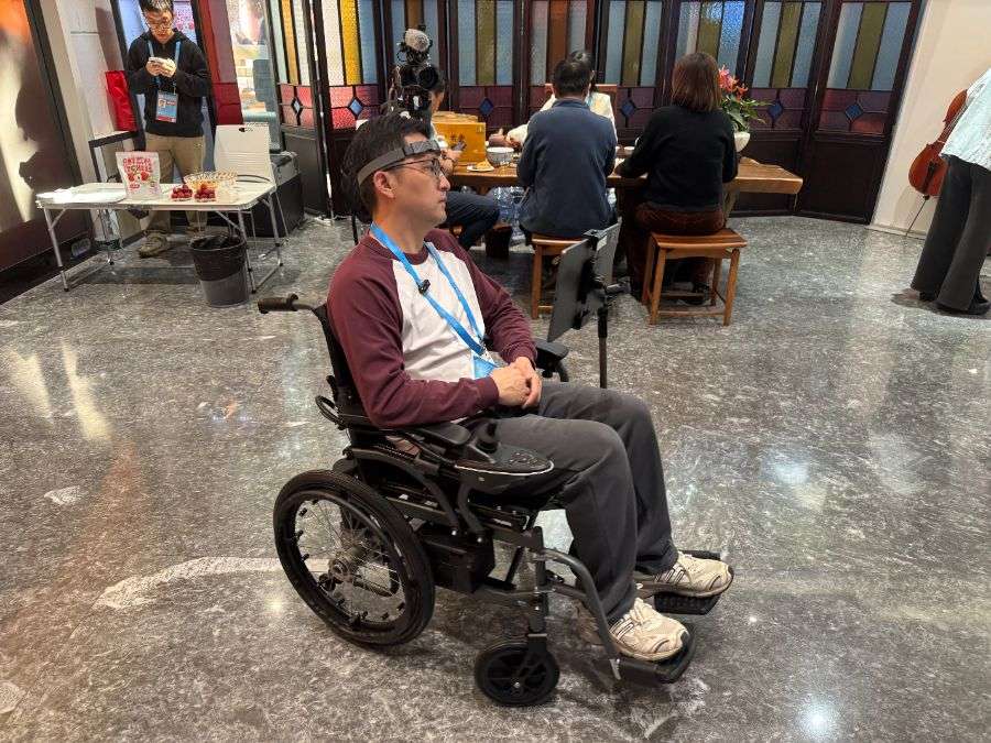 在残特奥会轮椅篮球比赛运动员接待酒店,一款脑控轮椅同样为运动员提供了便捷服务。使用者通过脑机接口技术、眼动等多模态信号,即可操控轮椅完成前进、后退、转向等操作,它尤其适合肢体障碍患者,特别是高位截瘫或渐冻症患者的出行需求。