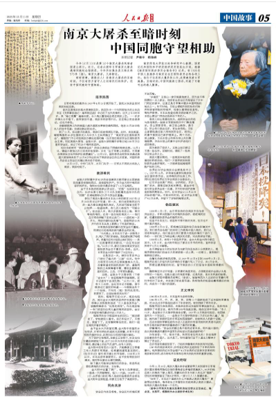 南京师范大学抗日战争研究中心教授、国家记忆和国际和平研究院研究员张连红介绍,根据《南京国际救济委员会报告书》记录,有1500名中国人直接参与南京安全区国际委员会的各项工作。他们不仅承担大量具体工作,还要避免被日军施暴。至暗时刻,中国同胞救亡图存,写就了可歌可泣的感人篇章。