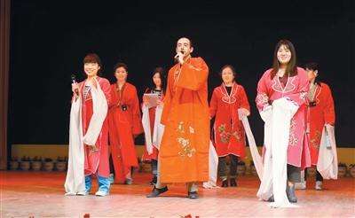 马天宇自己还参与剧本创作。他帮学生一个词一个词地“抠”,寻找“贬官”“三圣母”等中国古典文化词汇的最佳法语翻译;帮学生编排法语版戏剧《琵琶行》时,他也身着青衫、共同上台,化作风度翩翩的“白居易”……