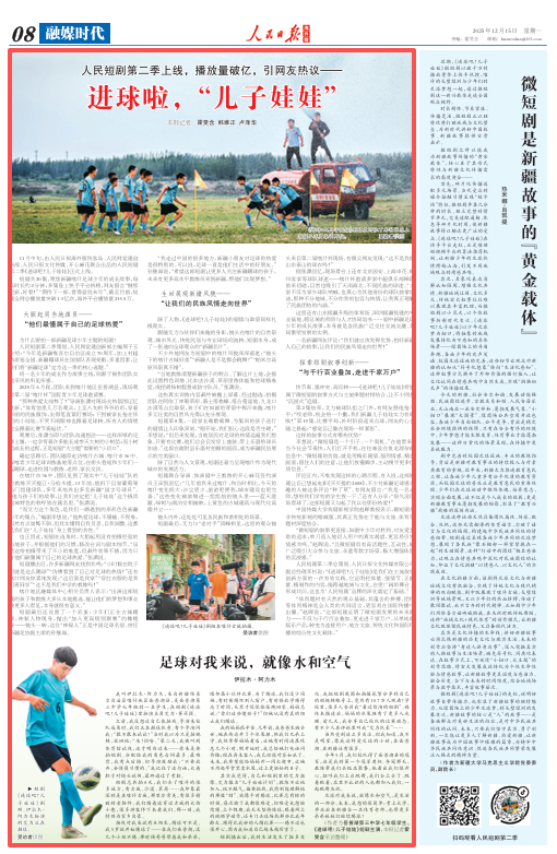 人民短剧第二季策划、人民网党建创新部主编周子玉介绍:“今年是新疆维吾尔自治区成立70周年,加上村超热席卷全国、新疆籍球员在国家队表现亮眼,多重因素,让我们将‘新疆足球’定为这一季的核心选题。”