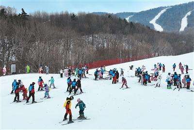 游客在哈尔滨亚布力滑雪旅游度假区滑雪。