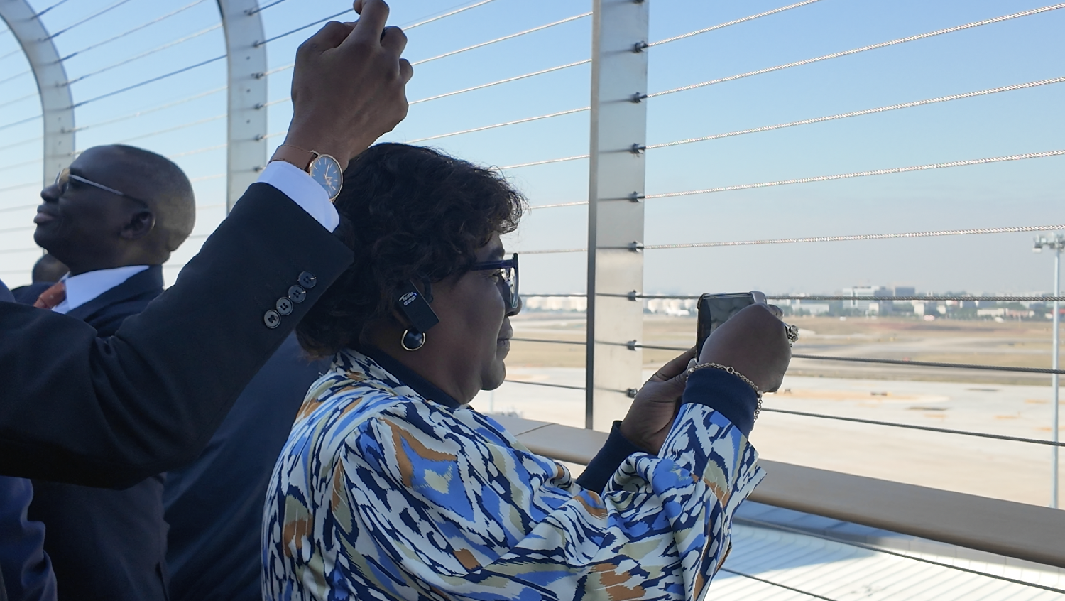 驻穗总领事馆官员在观景平台拍照,西侧6层的观景台是全国首创全景航空观景平台。