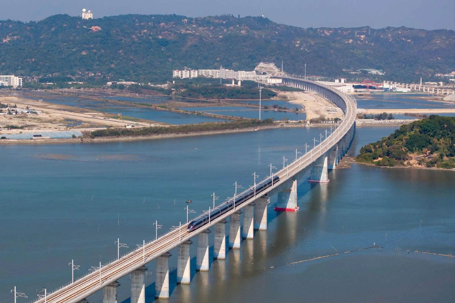 汕汕高铁复兴号动车组列车经过濠江特大桥。粤铁宣供图