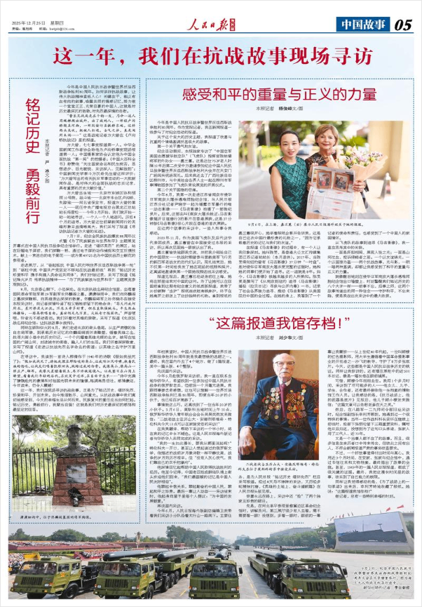 今年是中国人民抗日战争暨世界反法西斯战争胜利80周年,作为党报记者,我在新闻报道一线参与了对纪念活动的报道。