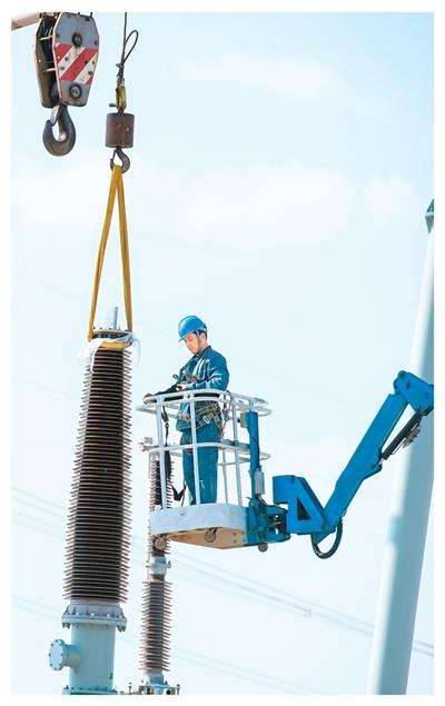 2025年10月22日,湖北省京山市孙桥镇官桥铺村,荆门东500千伏变电站工程建设正酣。黄 林摄(人民视觉)