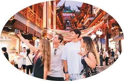 图为2025年7月21日,西班牙游客在上海豫园商城留影。张 悦摄(新华社发)