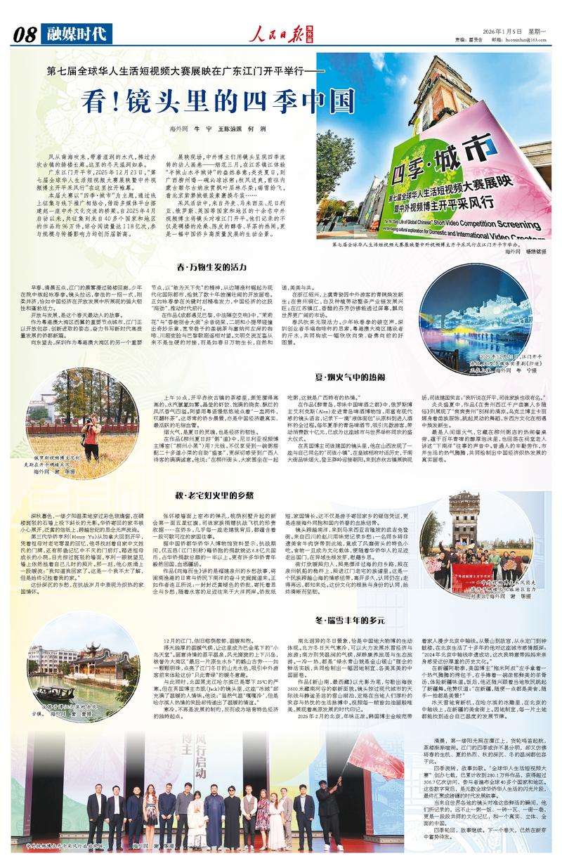四季流转,故事如歌。“全球华人生活短视频大赛”创办七载,已累计收到280.1万件作品,获得超过306.7亿次访问,参与者遍布全球40多个国家和地区。这些数字背后,是无数全球华侨华人生活的闪光片段,最终汇聚成磅礴的时代发展叙事。