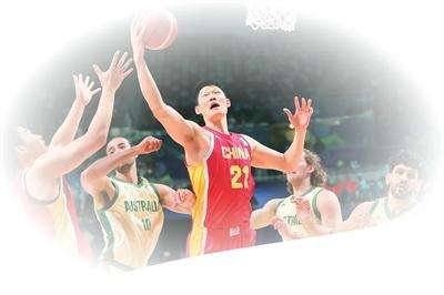 中国男篮球员胡金秋(中)在比赛中上篮。