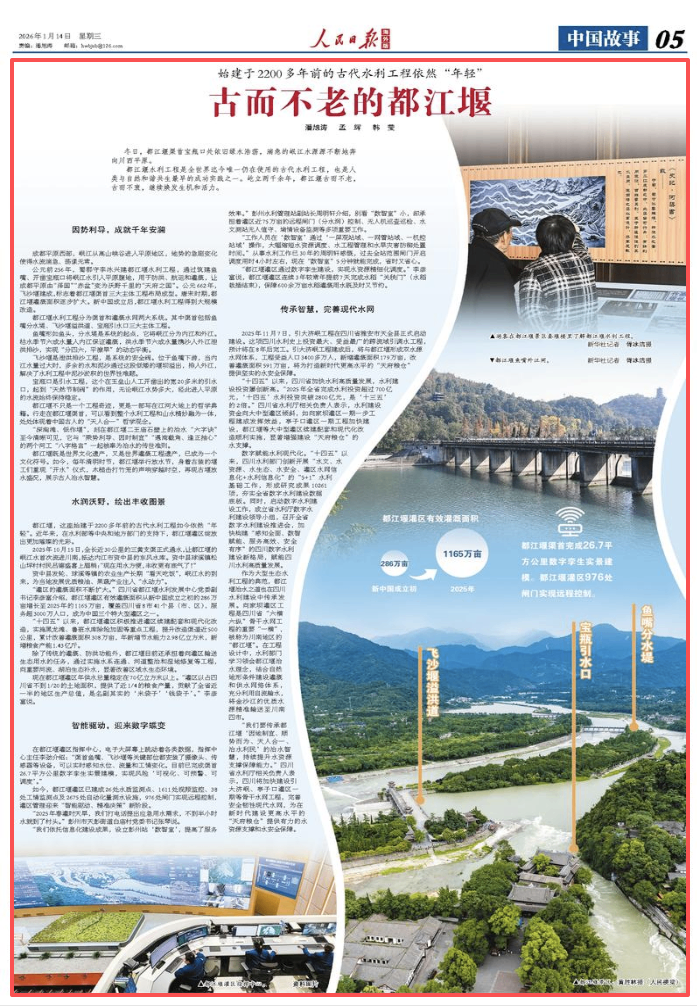 “灌区的灌溉面积不断扩大。”四川省都江堰水利发展中心党委副书记李彦富介绍,都江堰灌区有效灌溉面积从新中国成立之初的286万亩增长至2025年的1165万亩,覆盖四川省8市41个县(市、区),服务超3000万人口,成为中国三个特大型灌区之一。