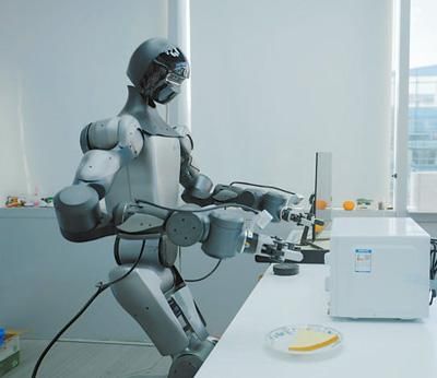 下午2点半,北京中关村软件园互联网创新中心,万境千寻(北京)科技有限公司95后具身智能算法工程师马程正盯着屏幕上跳动的数据,身旁的机器人“墨子”稳稳抓起装着面包的盘子,放进微波炉,按下启动键……金属指尖合拢,数据上传云端,模型将在几小时内完成迭代。