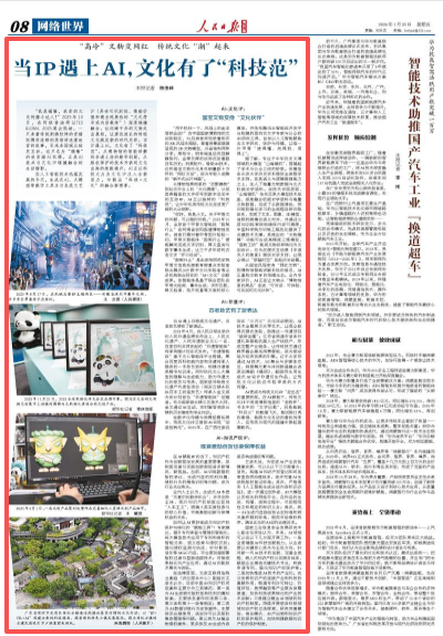 在人工智能技术迅猛发展的今天,生成式AI、大模型等数字工具正与各类文艺IP(具有可识别性、情感价值和商业延展性的“文化符号或内容载体”)深度碰撞融合,让沉睡千年的文物走出展柜,让源远流长的传统文化焕发新的时代光彩。当IP遇上AI,文化有了“科技范”。从博物馆的智能讲解到非遗工坊的数字创新,从版权保护的技术升级到文化出海的效能提升,AI正以科技之力为文化IP注入全新活力,勾勒出“科技+文化”的融合新图景。