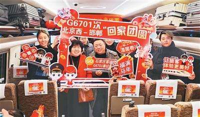 G6701次列车是春运首日北京地区的首趟高铁列车,列车长刘伟苑带着乘务员们早早在车门口等候旅客。“这趟车是春运热门返乡线路,乘客既有务工者、学生,也有探亲、旅游的旅客。”刘伟苑介绍,班组今年推出了一系列贴心服务,“我们准备了‘爱心服务箱’,里面有暖手宝、暖贴和老花镜,供旅客随时取用;针对行李多的旅客,乘务员会协助粘贴‘姓名+到站’行李签,途中帮忙关注查找;为小朋友准备的‘童趣包’里有玩具,让旅途更愉快。”