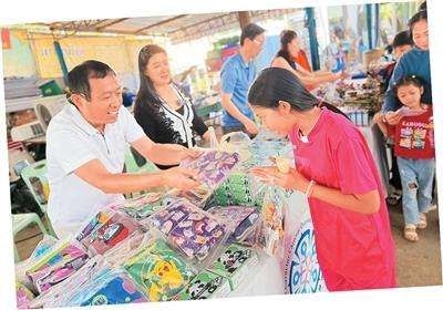 今年年初正逢泰国儿童节,当地社区、公司、学校举办多种庆祝活动。泰国北京总商会北京—曼谷国际经贸发展服务中心常务副主席张静居住的周边地区有一家寺庙,寺庙也举办活动邀请社区孩子共度儿童节。为此,她联系了邻居、同事和朋友筹集了食物和文具用品,包括300个设计新颖的儿童背包,来自北京的熊猫钥匙链、冰箱贴,邻居特意买的巧克力、曲奇等食物,还有一些承载汉字文化的礼物。儿童节当天,她和朋友在寺庙里占了一个展台,孩子们排队领到喜欢的物资,都非常高兴。