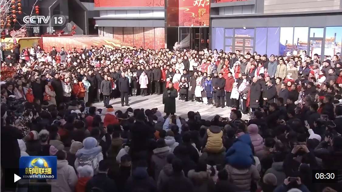 东城区隆福寺街区通过风貌保护和更新改造,打造成为多业态步行街区。正值农历小年,隆福大厦前,新春市集吸引了大量市民和游客。习近平总书记饶有兴致察看各式年货摊位,愉快地向大家讲起年少时多次到隆福寺的情景。