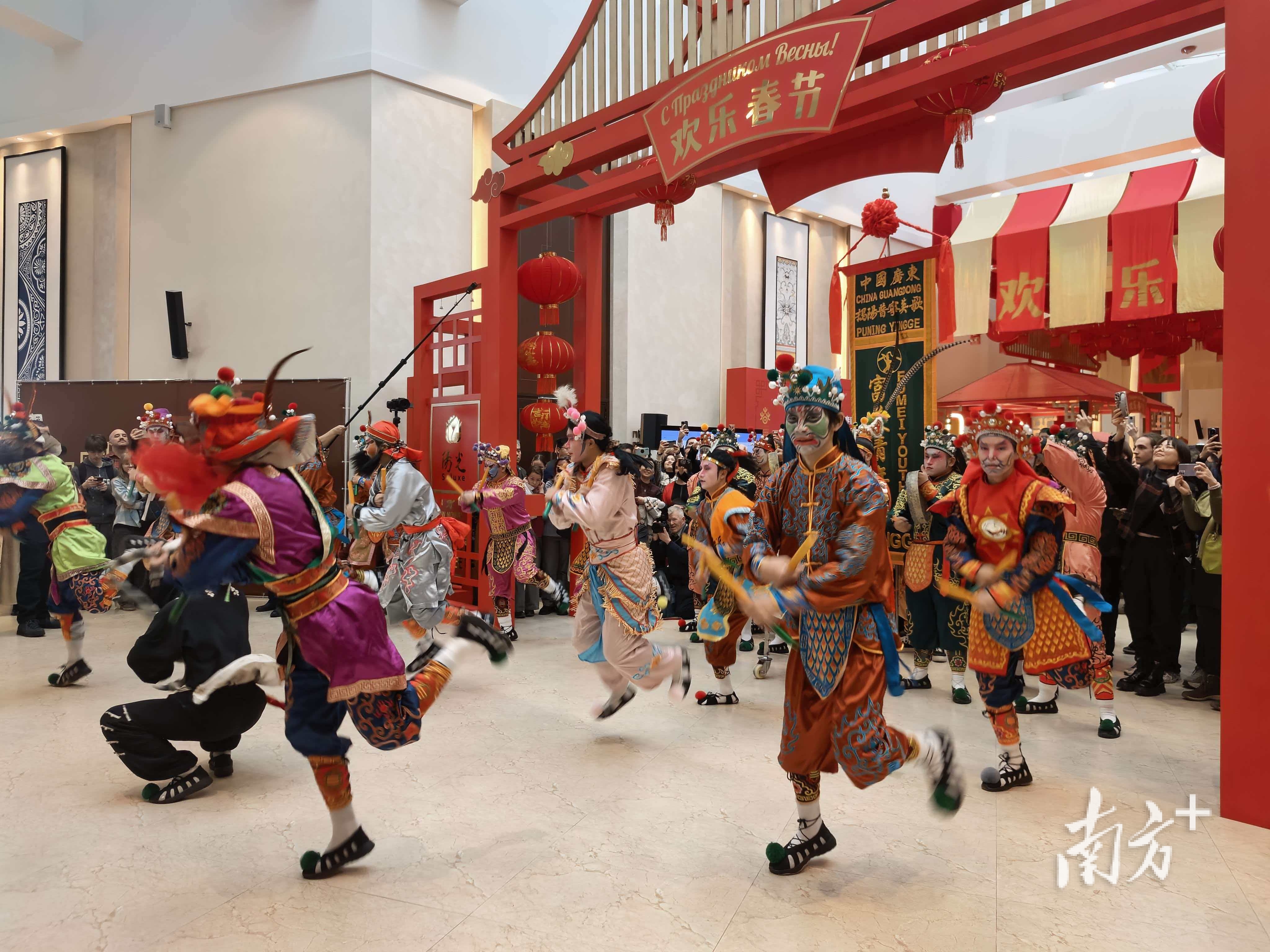 开幕式上,随着激昂的鼓点声响起,来自广东的普宁富美青年英歌队激情起舞,“英雄打虎”“大鹏展翅”“拔草擒蛇”等创新动作技惊四座,气势磅礴的舞姿赢得中外嘉宾阵阵欢呼。广绣、香云纱、广彩茶具,还有广东文旅与央视总台联名打造的保温杯、文创冰箱贴等众多岭南“好物”同场“上新”,为中外嘉宾呈现独具岭南特色的生活美学,送去新春的美好祝福。