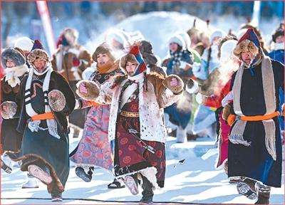 演员在第二十一届内蒙古自治区冰雪那达慕开幕式上表演。